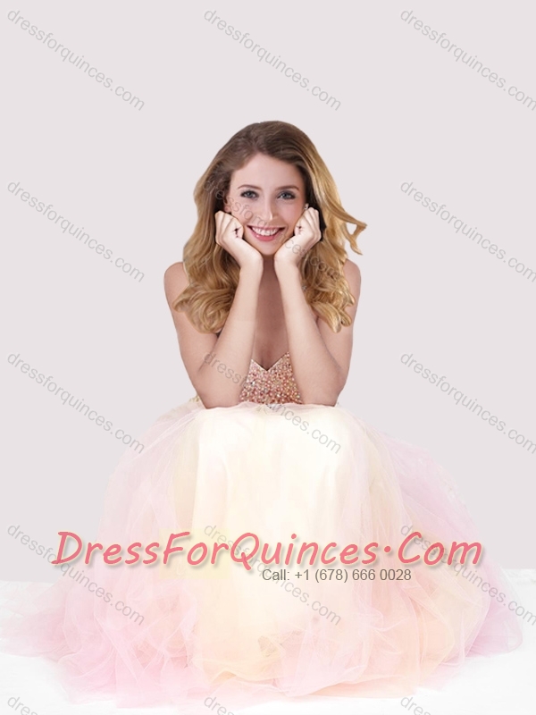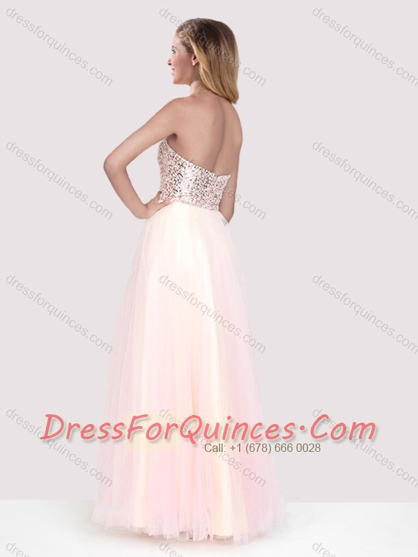 Classical Beaded Bodice Empire Baby Pink Long Prom Dress in Tulle