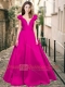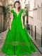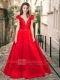 Classical Deep V Neckline Satin Prom Dress with Cap Sleeves