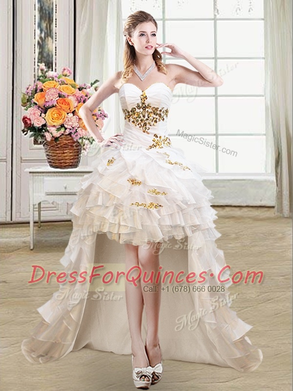 Colorful Ball Gowns Prom Evening Gown White Sweetheart Organza Sleeveless High Low Lace Up