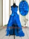 Colorful Beading and Appliques and Bowknot Dress for Prom Royal Blue Zipper Sleeveless High Low
