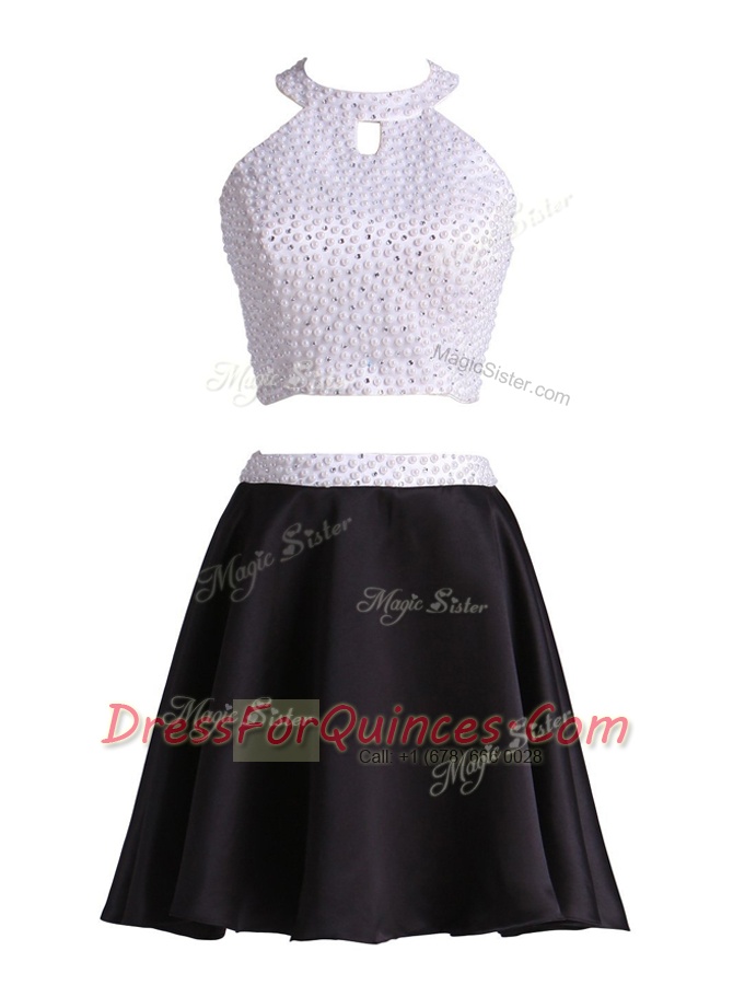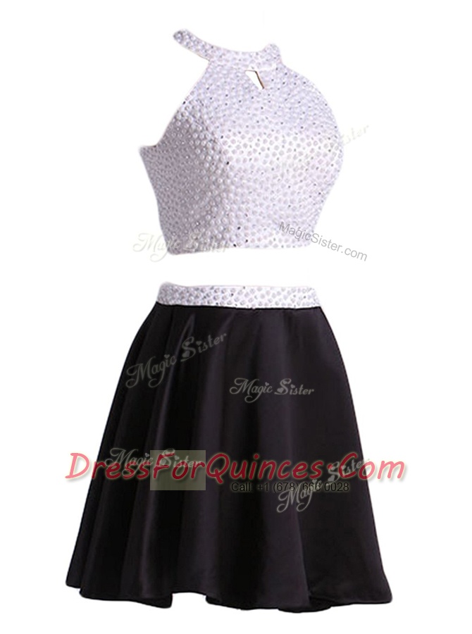 Colorful Halter Top Satin Sleeveless Mini Length Prom Dresses and Beading
