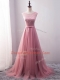 Comfortable Pink Sleeveless Beading and Belt Lace Up Evening Dress