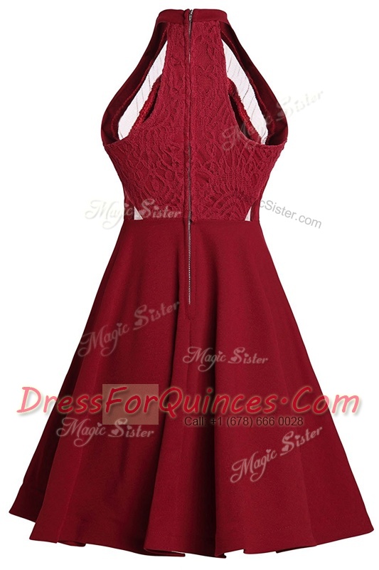 Designer Wine Red High-neck Zipper Ruffled Layers Dress for Prom Sleeveless