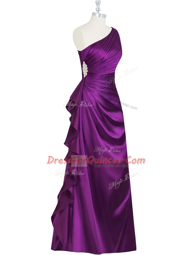 Discount One Shoulder Sleeveless Side Zipper Prom Evening Gown Purple Elastic Woven Satin