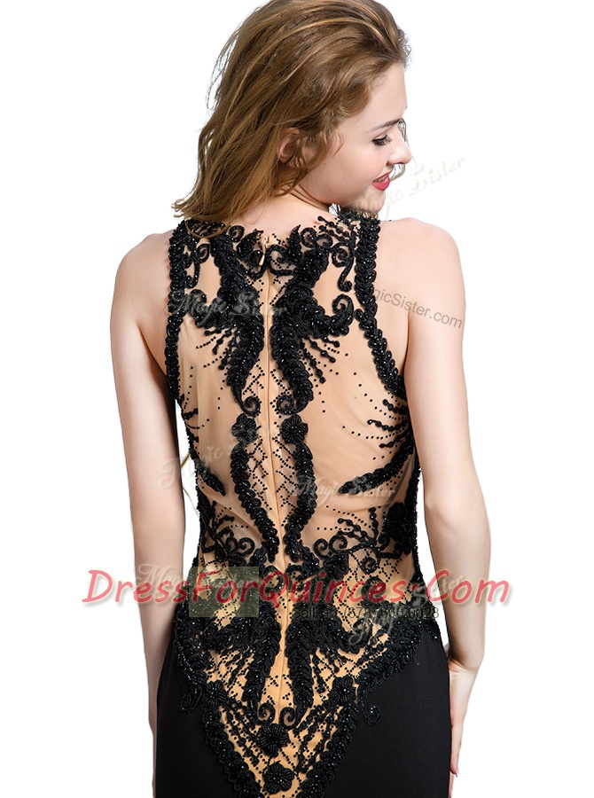 Discount With Train Black Prom Dress Scoop Sleeveless Brush Train Zipper