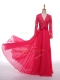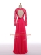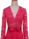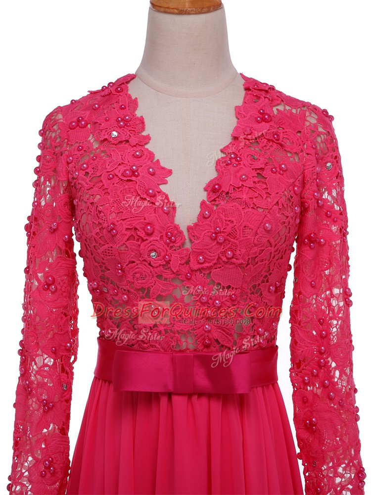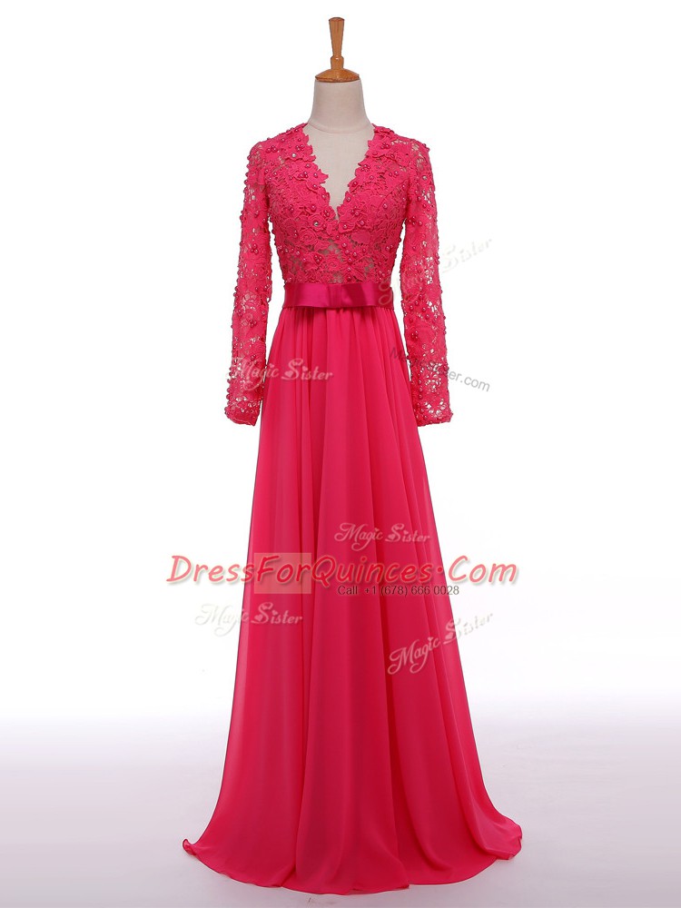 Dynamic Hot Pink Zipper Evening Dress Lace and Appliques and Belt Long Sleeves Floor Length