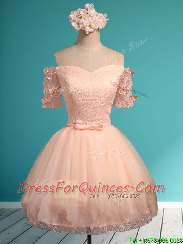 Elegant Off the Shoulder Short Sleeves Prom Dresses with Appliques and Belt