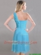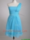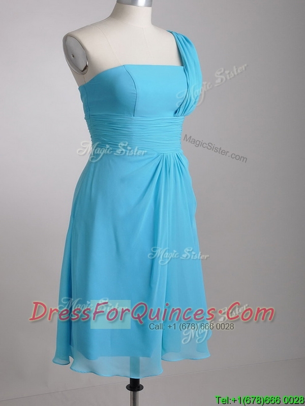 Elegant One Shoulder Ruched Chiffon Prom Dress in Aqua Blue