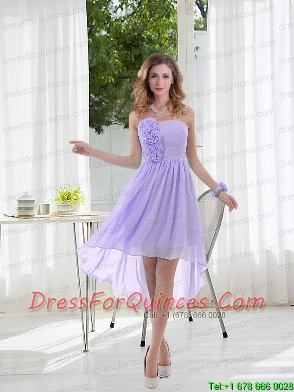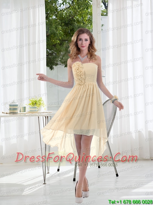 Empire Strapless Hand Made Flowers Bridesmaid Dress with High Low