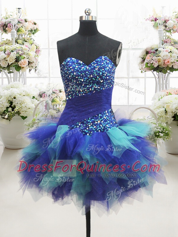 Fancy A-line Prom Dress Multi-color Sweetheart Tulle Sleeveless Mini Length Lace Up