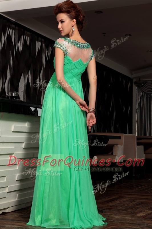 Fine Scoop Sleeveless Side Zipper Prom Gown Green Chiffon