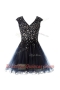 Fine V-neck Cap Sleeves Criss Cross Prom Party Dress Navy Blue Tulle