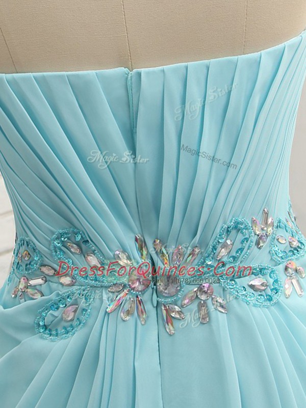 Glorious Sweetheart Sleeveless Chiffon Beading and Ruching Zipper