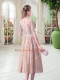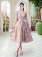 Half Sleeves Zipper Tea Length Belt Prom Dresses