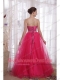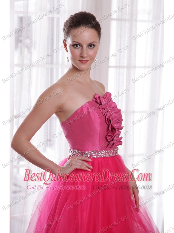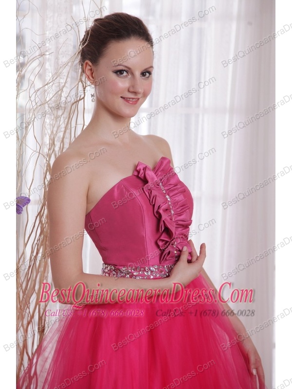 Hot Pink A-Line / Princess Strapless Floor-length Tulle Beading Prom Dress