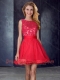 Hot Sale Scoop Backless Red Prom Dress with Appliques and Belt