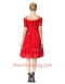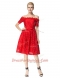 Ideal Off the Shoulder Sleeveless Zipper Knee Length Lace Prom Dress