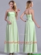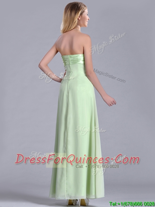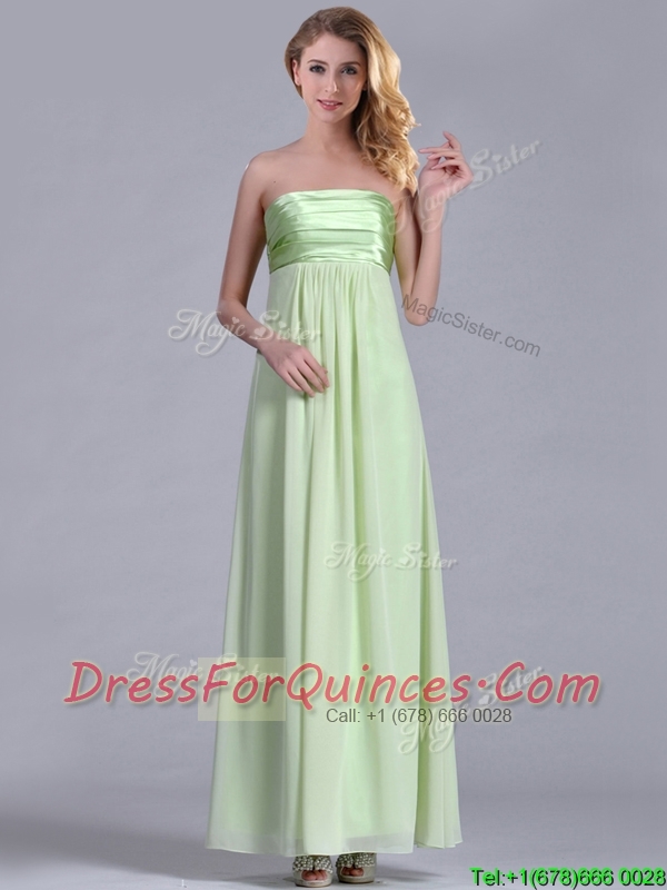 Latest Strapless Yellow Green Chiffon Prom Dress in Ankle Length