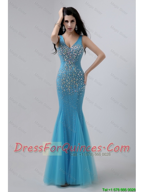 Luxurious Mermaid Beaded Prom Dresses with V Neck
