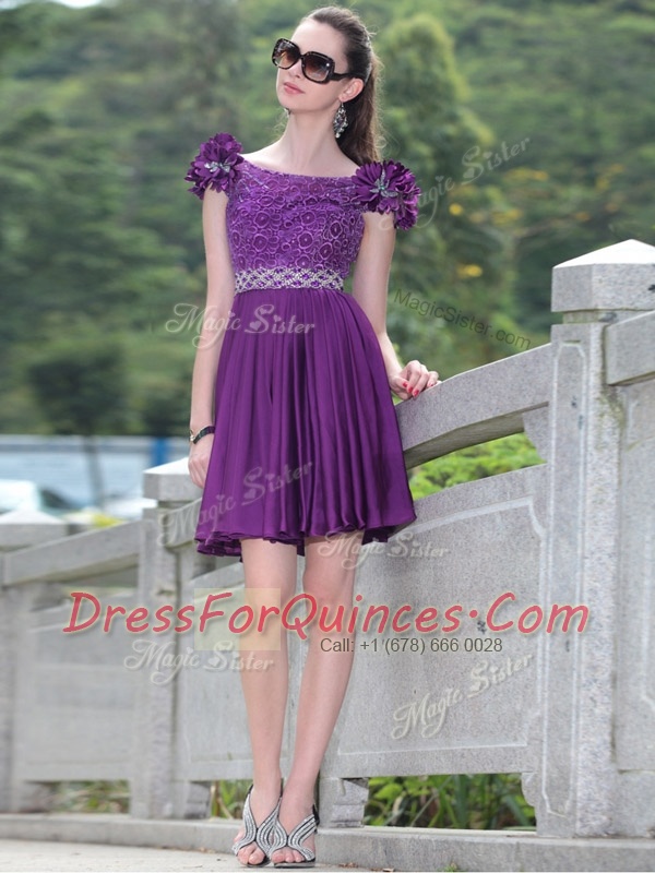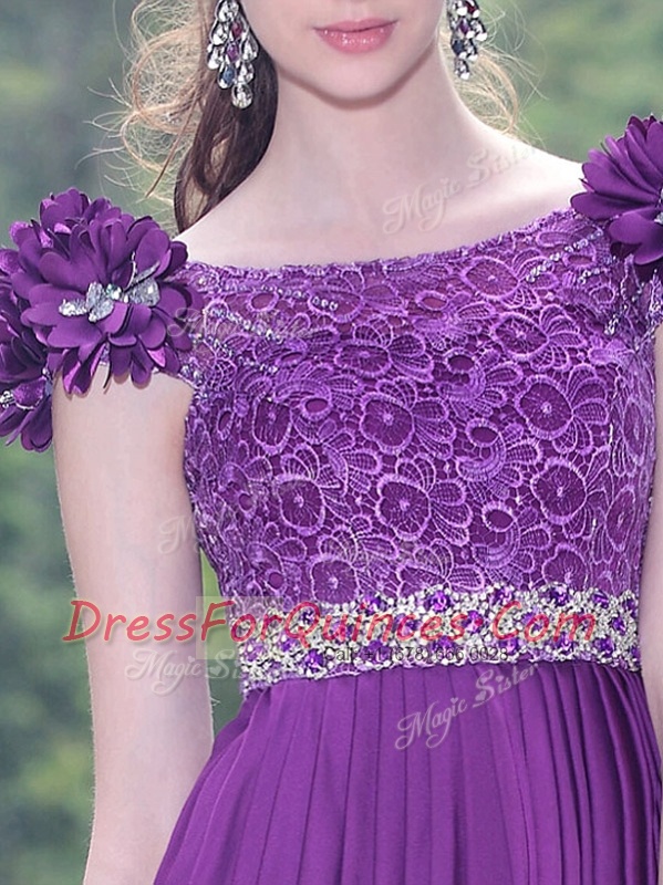 Luxury Scoop Sleeveless Zipper Knee Length Beading and Hand Made Flower