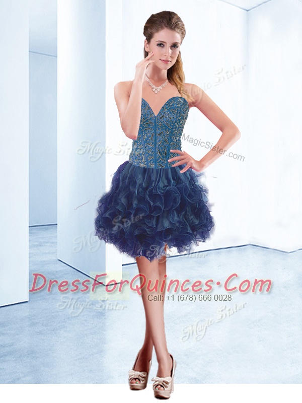 Mini Length Lace Up Navy Blue for Prom and Party with Beading