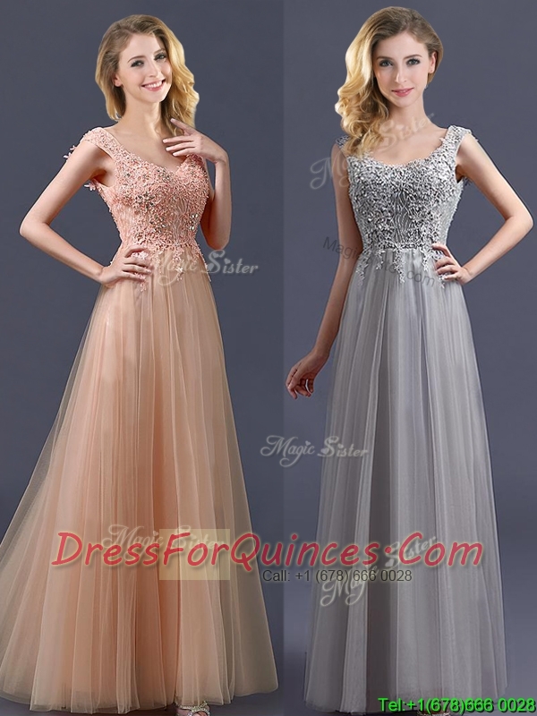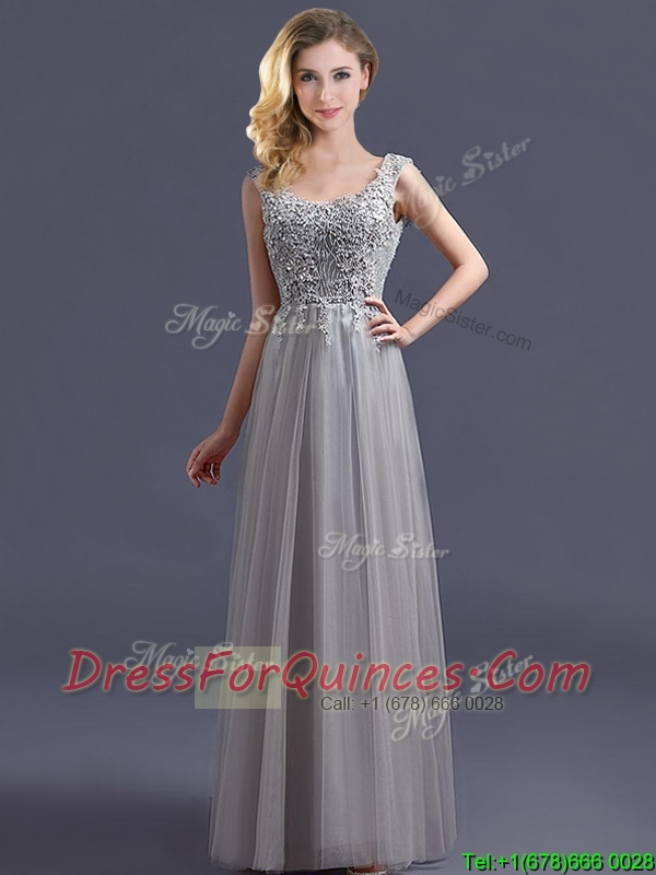 Most Popular Scoop Grey Long Prom Dresses with Appliques