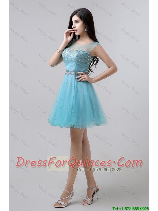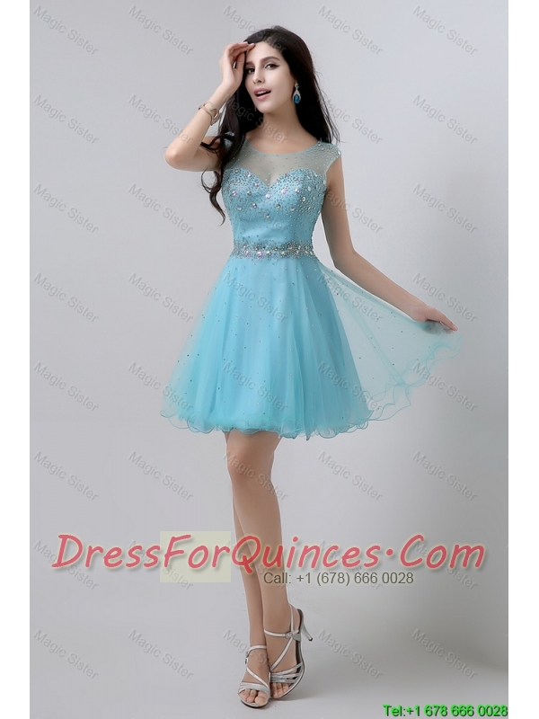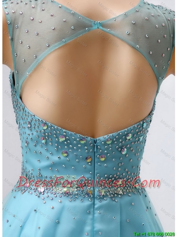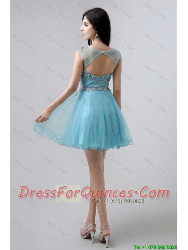 New Style A Line Scoop Open Back Prom Dresses with Beading