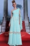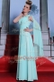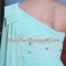 One Shoulder Sleeveless Prom Dresses Floor Length Lace and Ruching Turquoise Chiffon