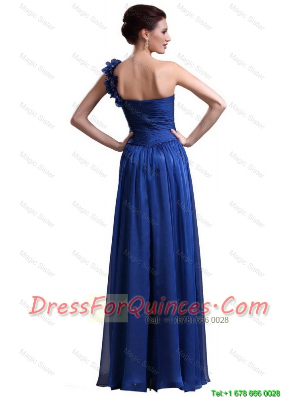 Perfect Royal Blue One Shoulder Prom Dresses with Appliques and Ruching