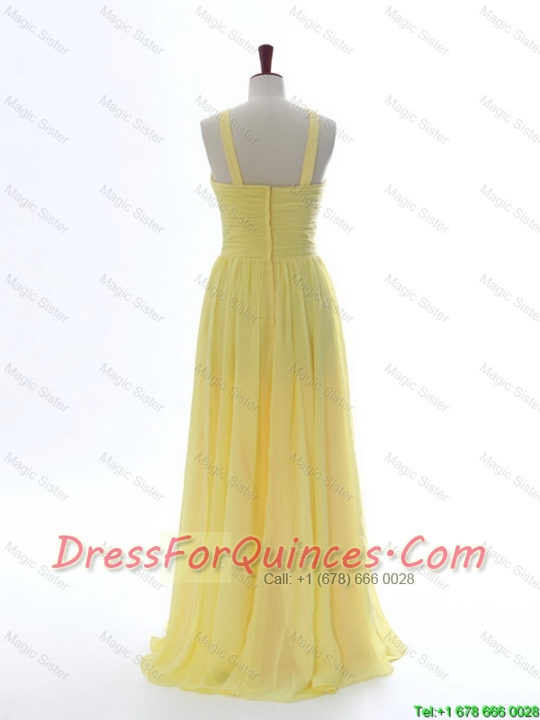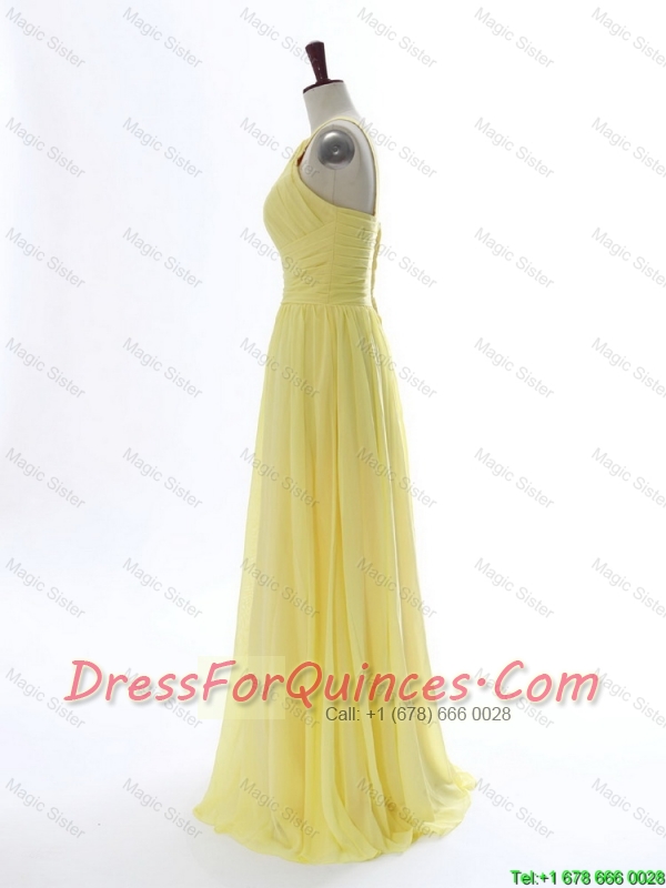 Perfect Simple 2016 Scoop Chiffon Yellow Prom Dresses with Sweep Brain