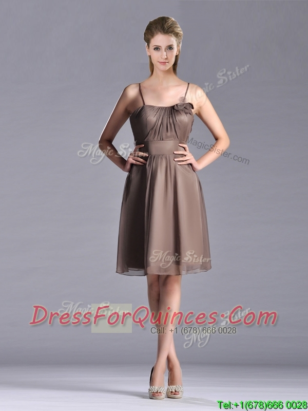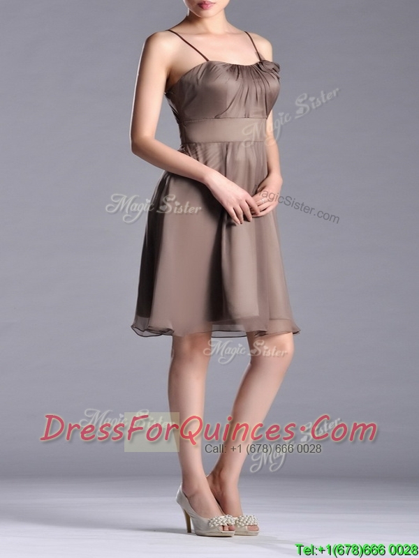 Popular Chiffon Brown Short Prom Dress with Spaghetti Straps