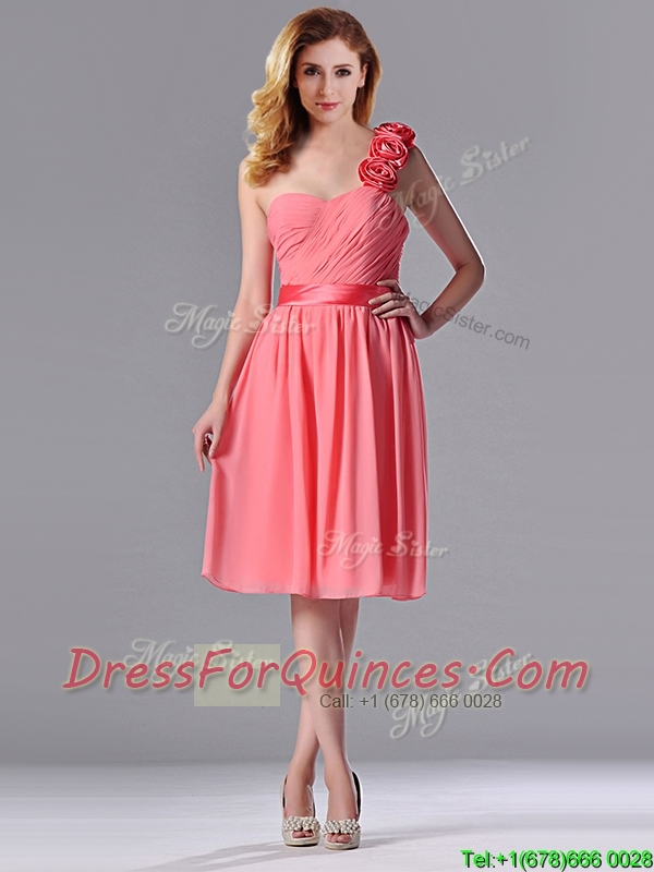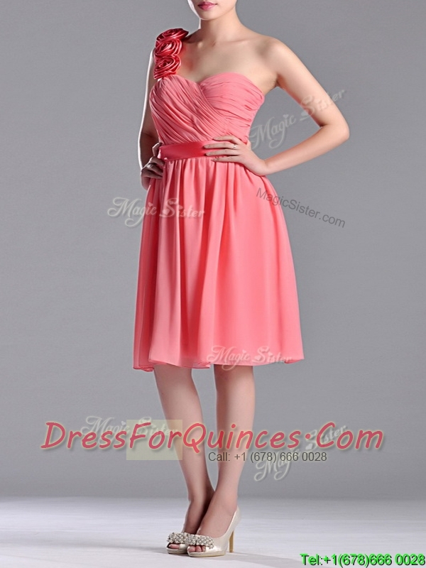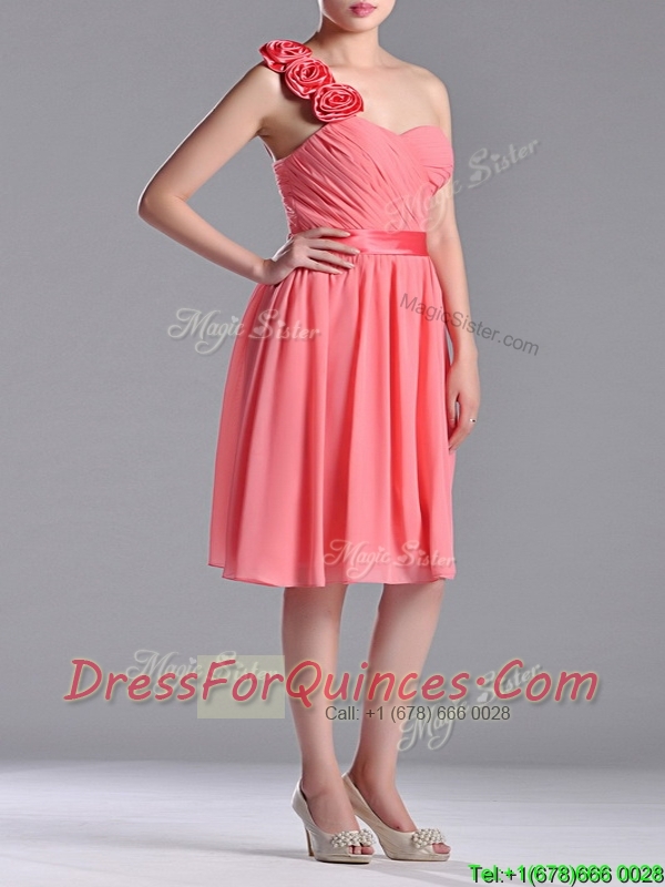 Popular Watermelon Prom Dress with Hand Made Flowers Decorated One Shoulder