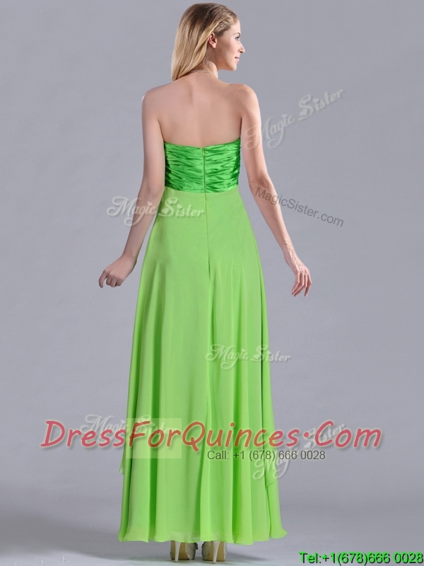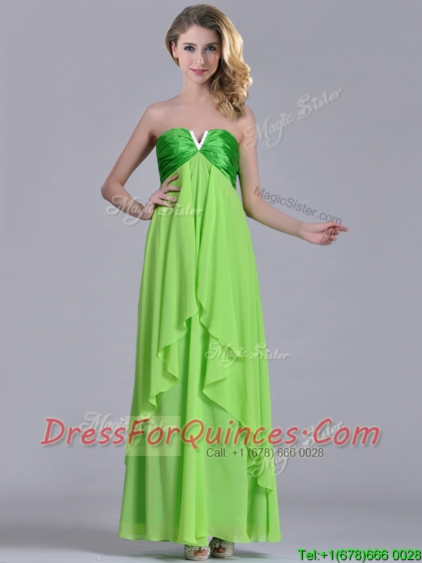Pretty Beaded Decorated V Neck Spring Green Prom Dress in Ankle Length