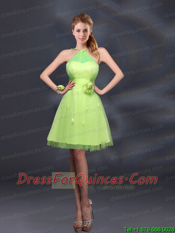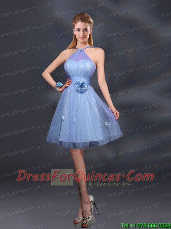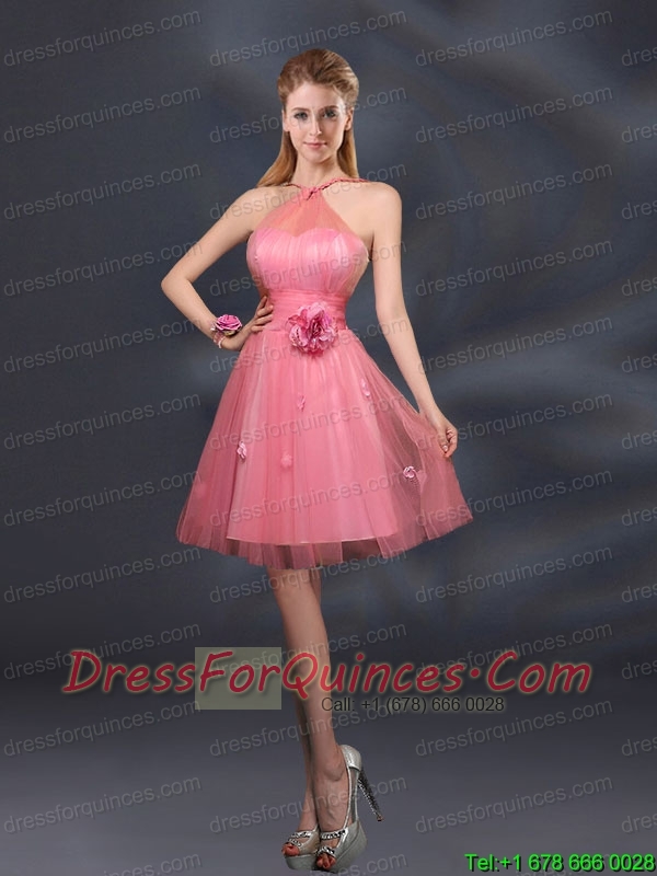 Pretty Halter A Line Bridesmaid Dresses with Hand Made Flowers