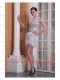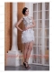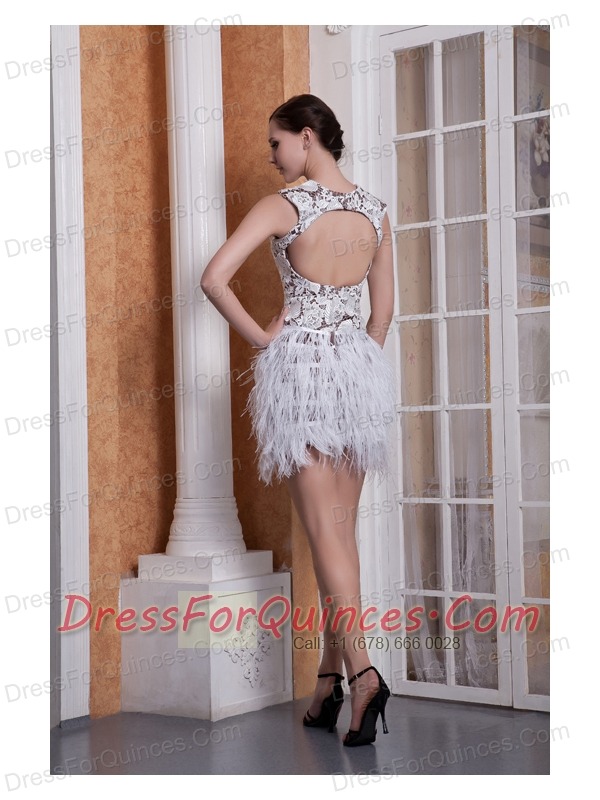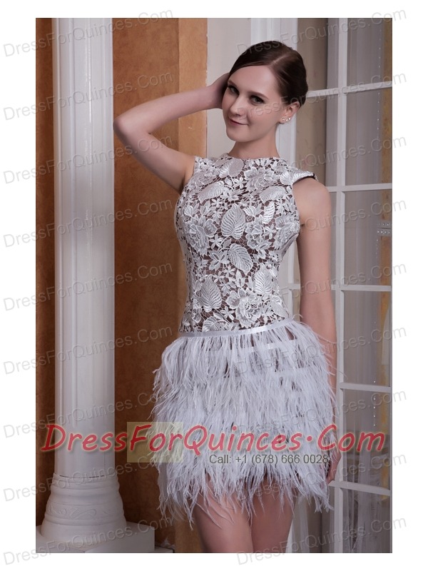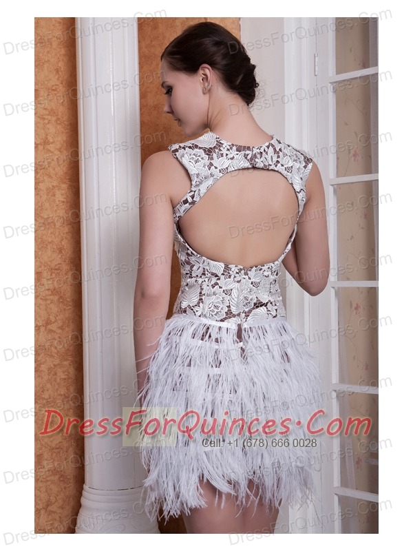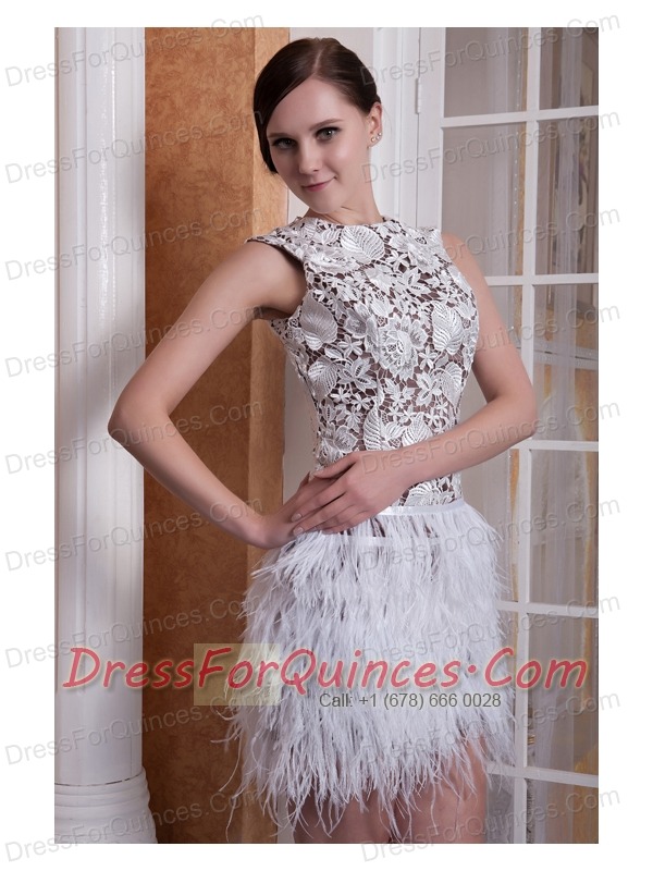 Prom / Cocktail Dress White Column Scoop Mini-length Feather