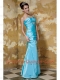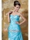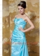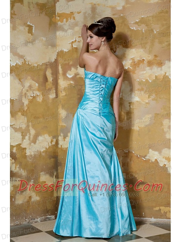 Prom Dress Aqua Blue Column Sweetheart Floor-length Taffeta Beading