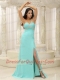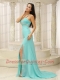 Prom Dress Beaded Decorate One Shoulder Ruched Bodice High Slit Custom Made