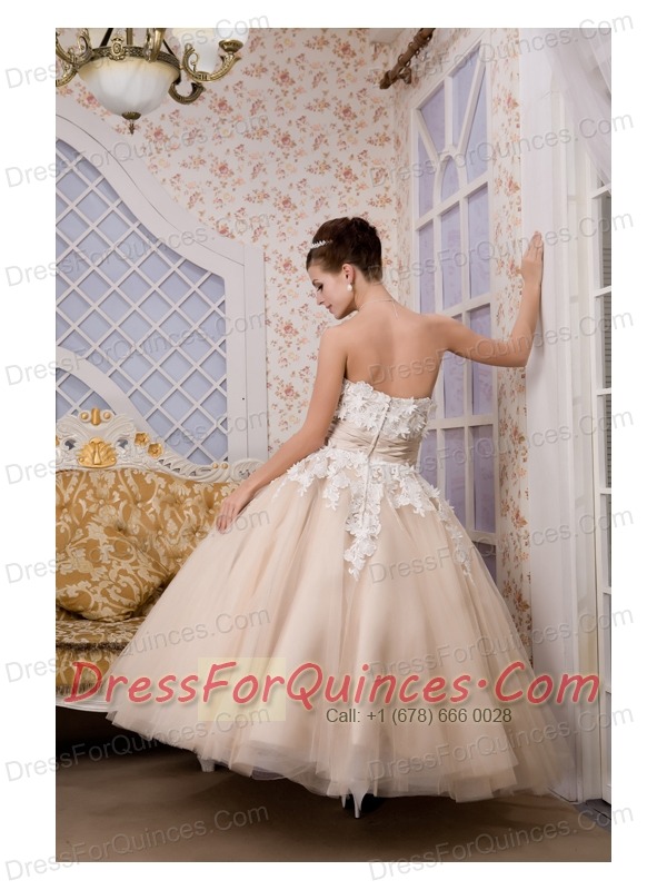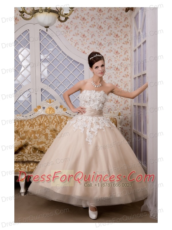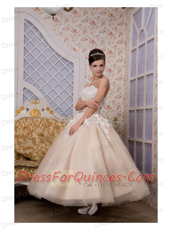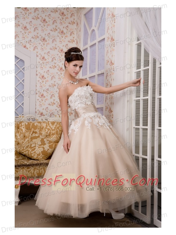 Prom Dress Beautiful A-line Strapless Ankle-length Tulle Appliques