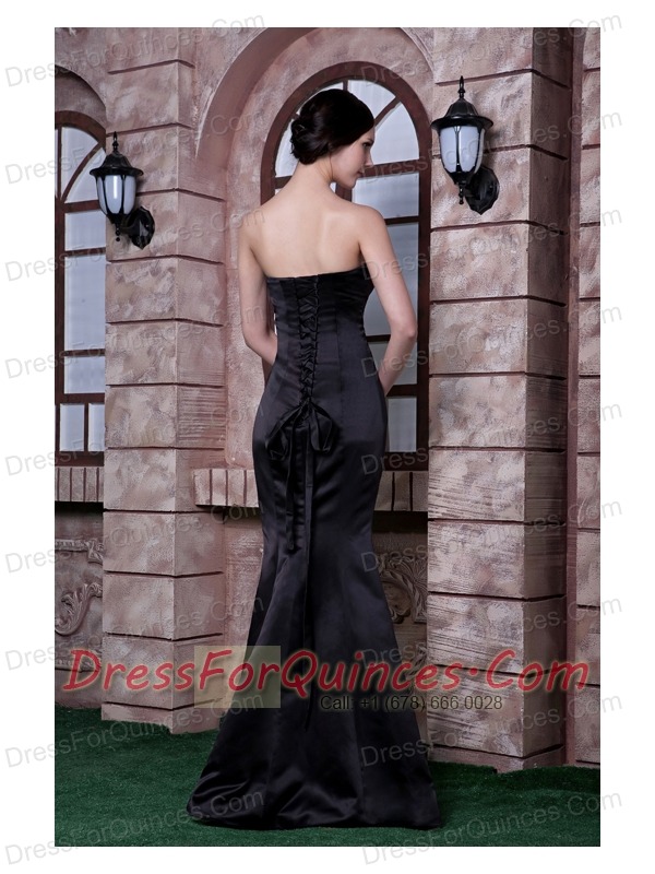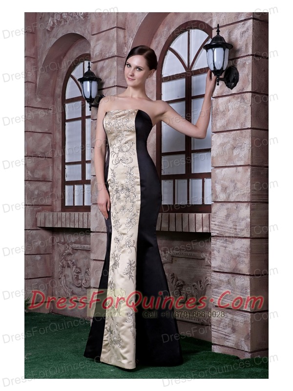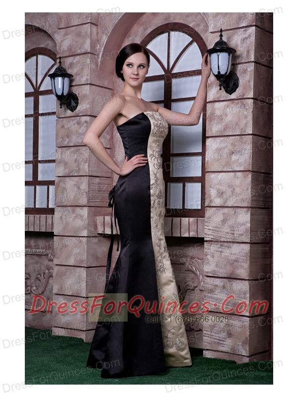 Prom Dress Black and Champagne Mermaid Strapless Floor-length Embroidery Taffeta