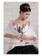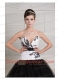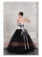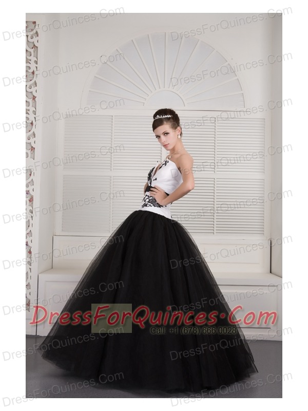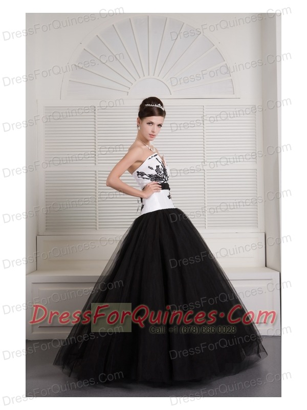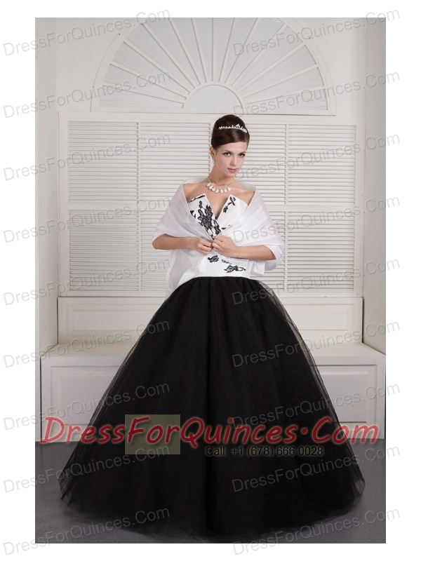 Prom Dress Black and White Ball Gown V-neck Floor-length Tulle Embroidery