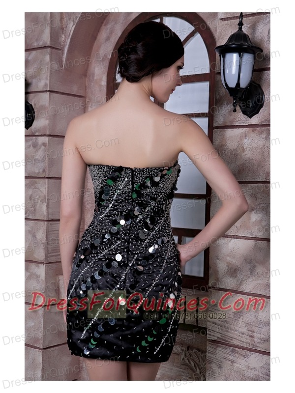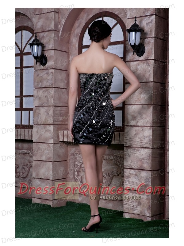 Prom Dress Black Column Strapless Mini-length Taffeta Sequins and Beading