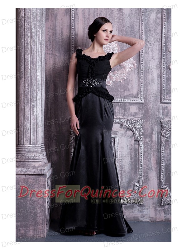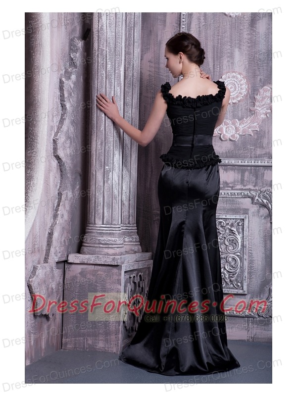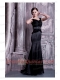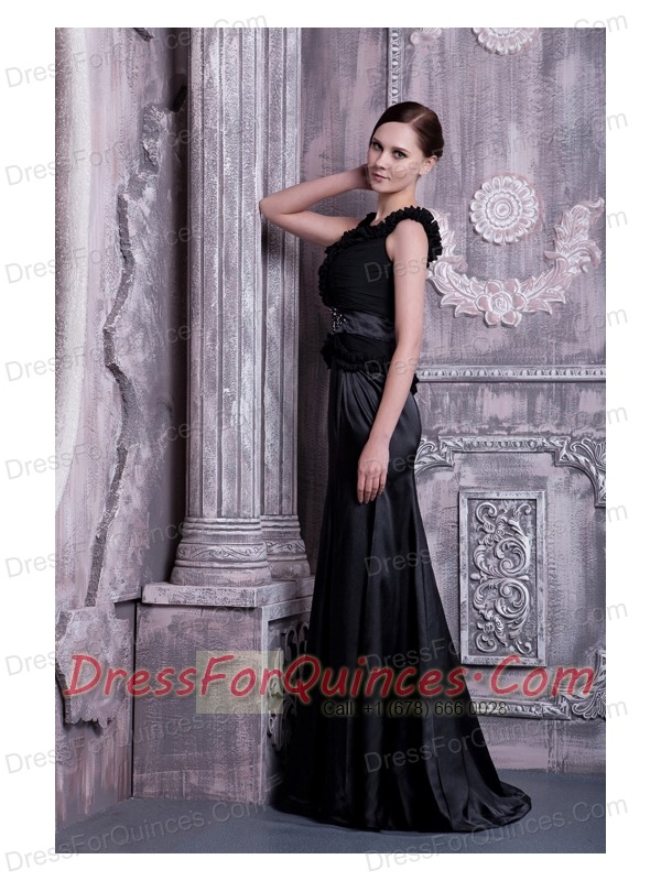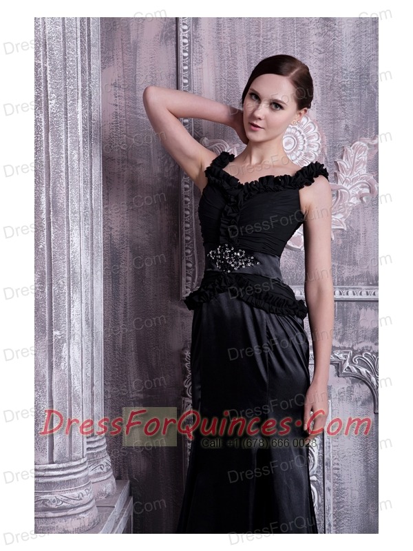 Prom Dress Black Column Straps Brush Train Elastic Woven Satin Beading