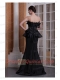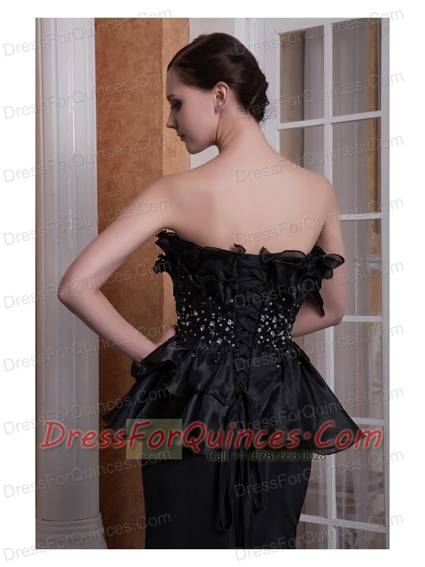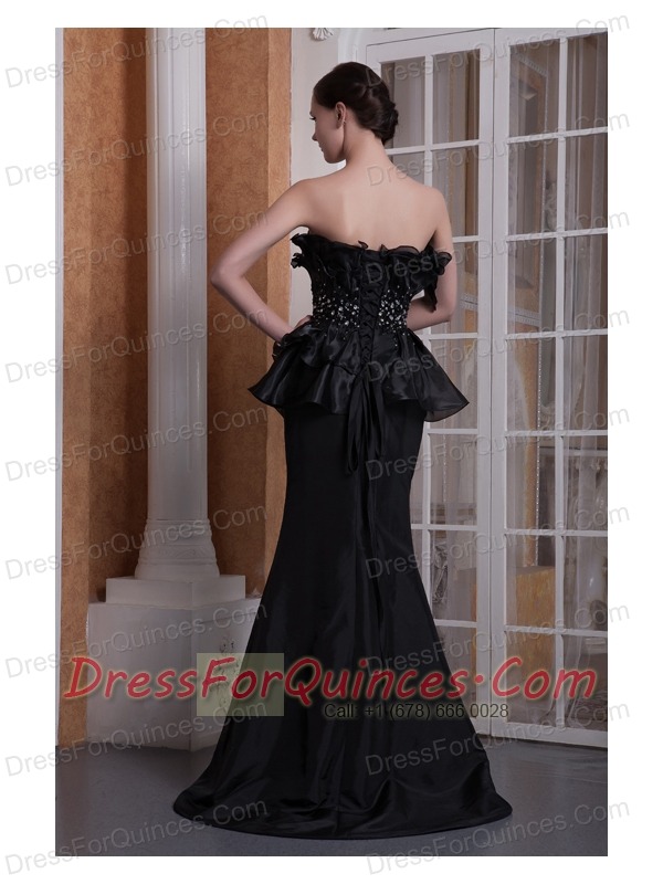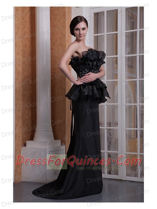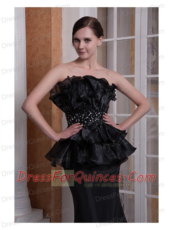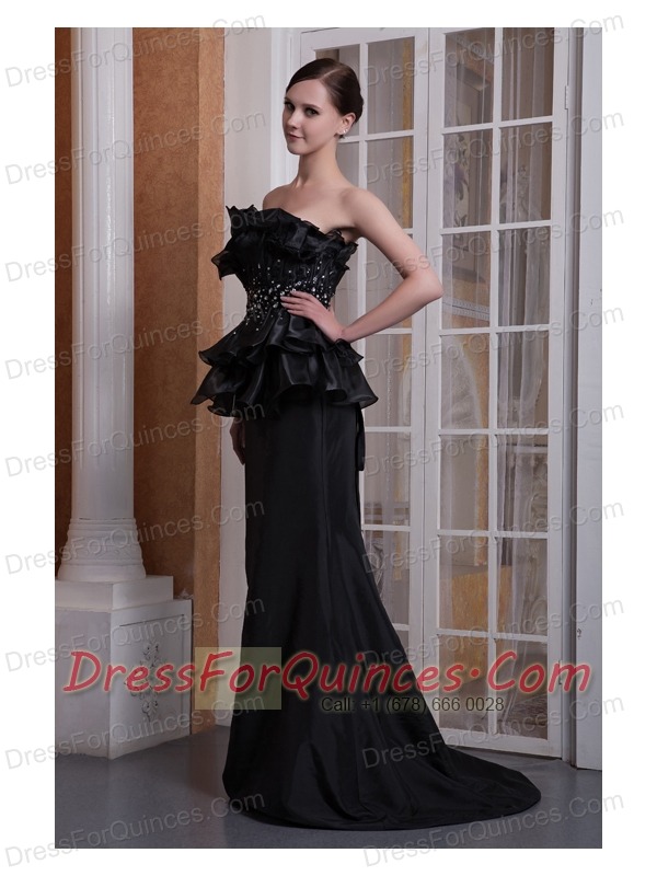 Prom Dress Black Mermaid Strapless Brush Train Elastic Woven Satin Beading