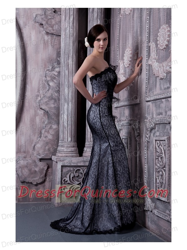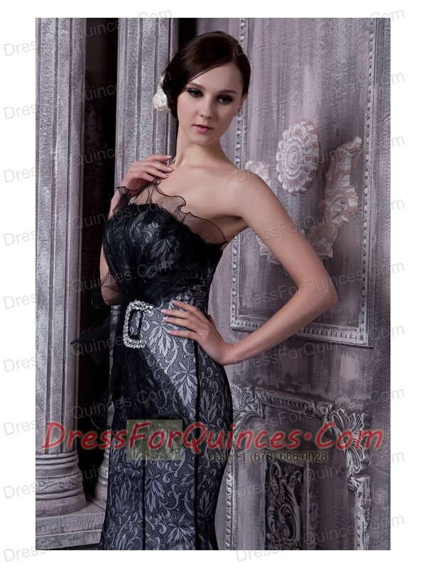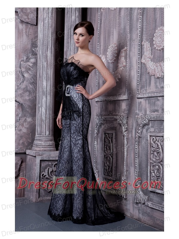 Prom Dress Black Mermaid Strapless Floor-length Organza Beading