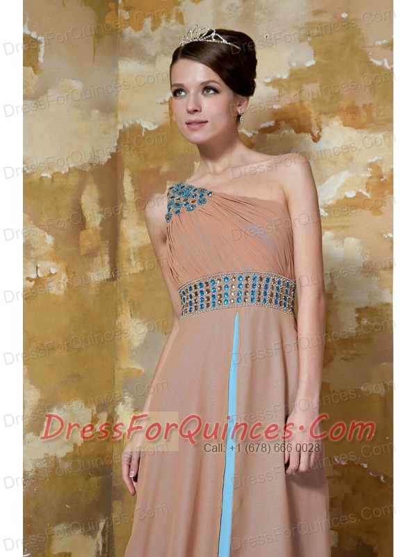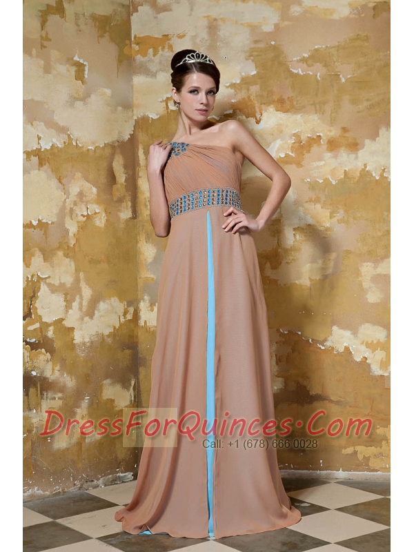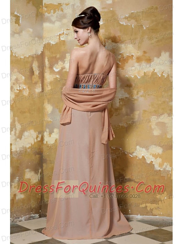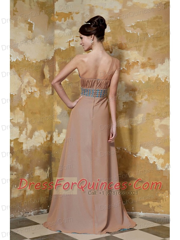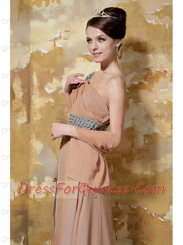 Prom Dress Brown Column One Shoulder Floor-length Chiffon Beading