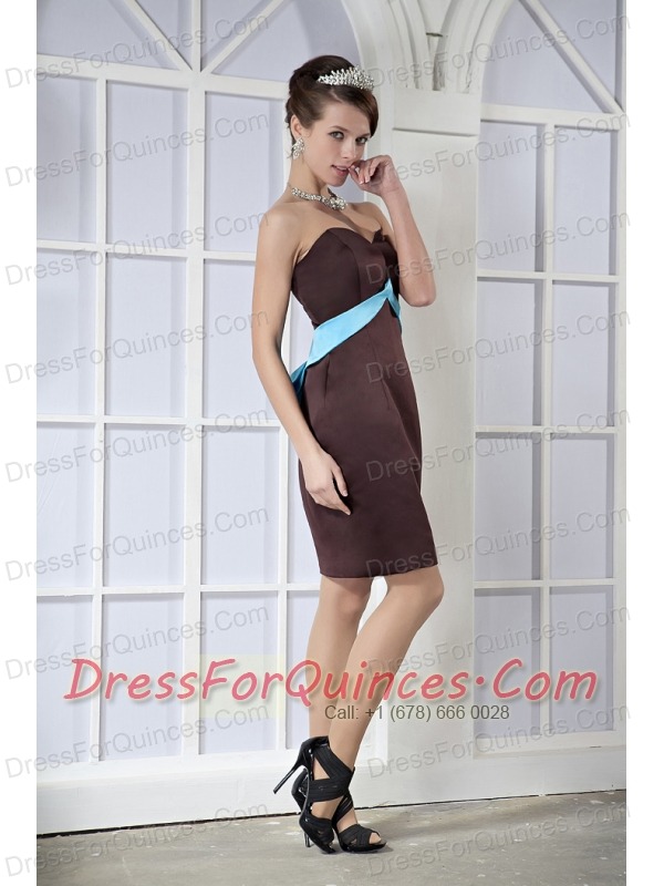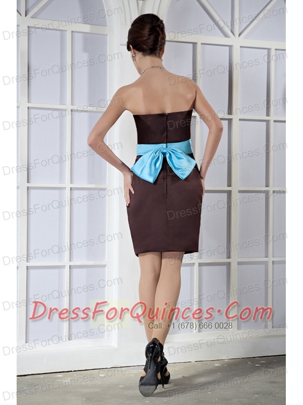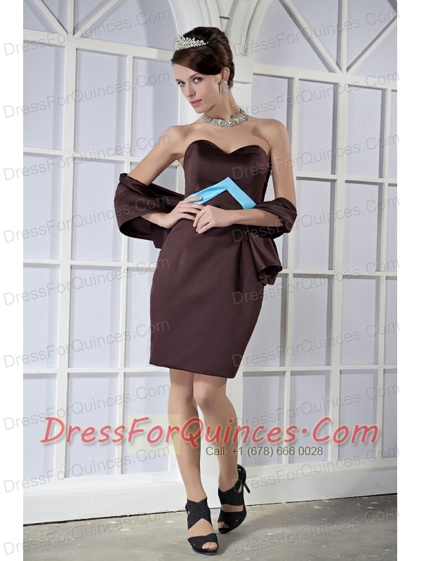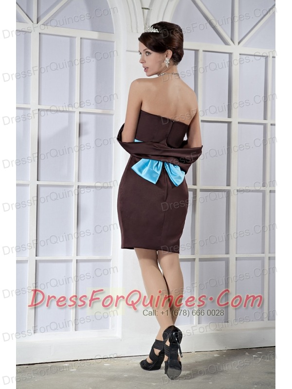 Prom Dress Brown Column Sweetheart Mini-length Satin Bow