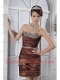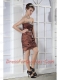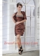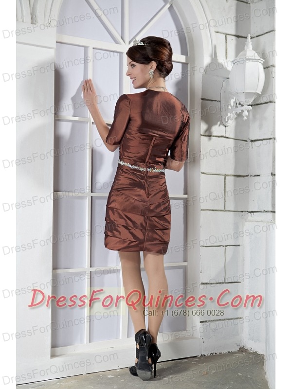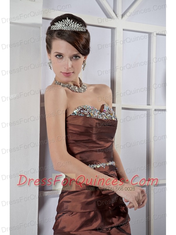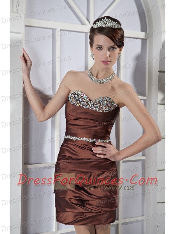 Prom Dress Brown Column Sweetheart Mini-length Taffeta Beading
