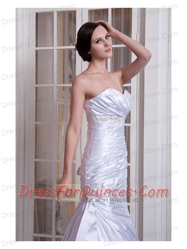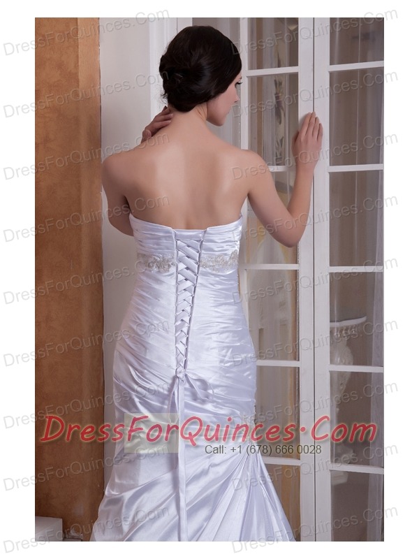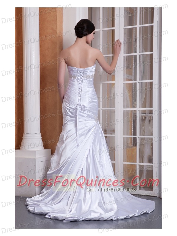 Prom Dress Custom Made Column Sweetheart Court Train Taffeta Appliques and Ruch