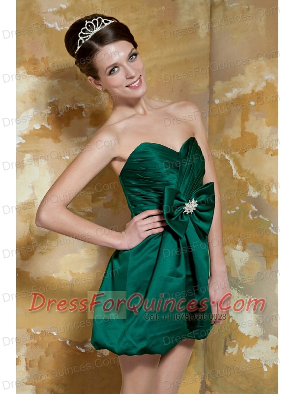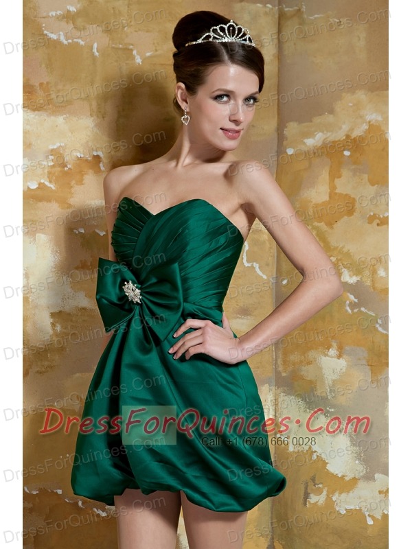 Prom Dress Dark Green Column Sweetheart Mini-length Taffeta Beading