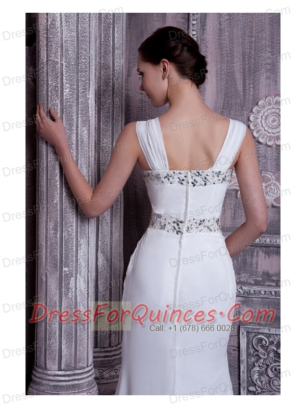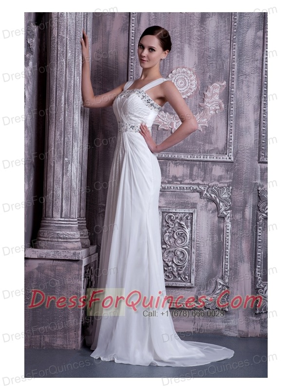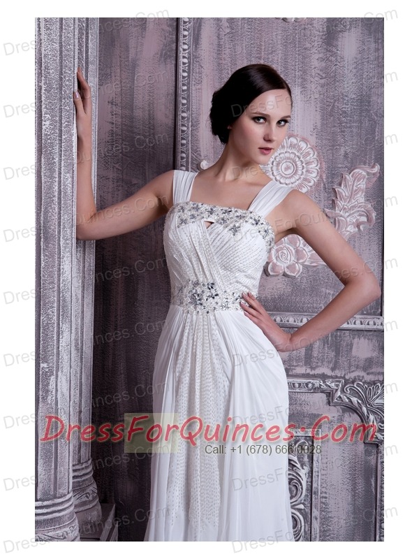 Prom Dress Fashionable Empire Straps Brush Train Beading Chiffon